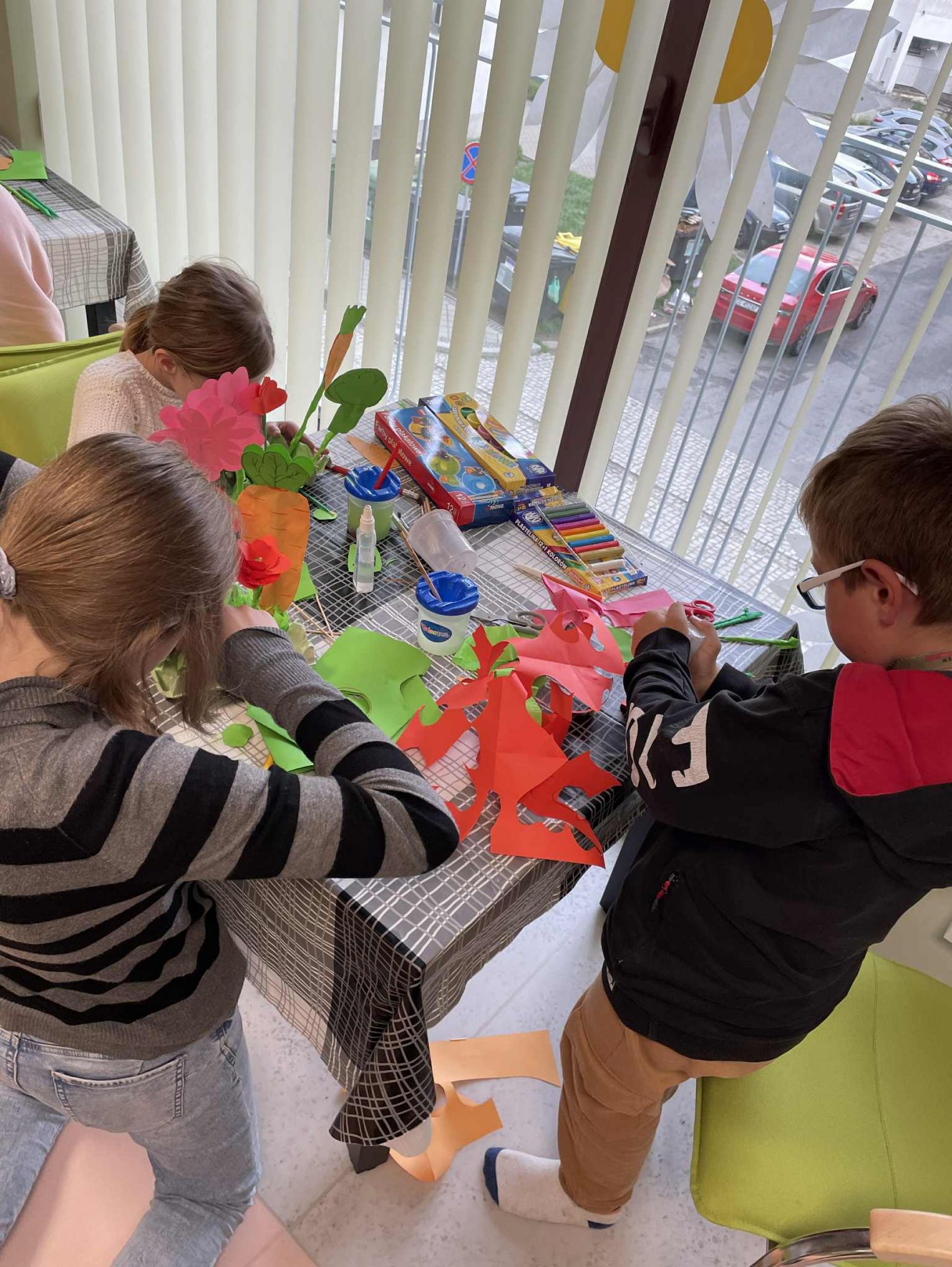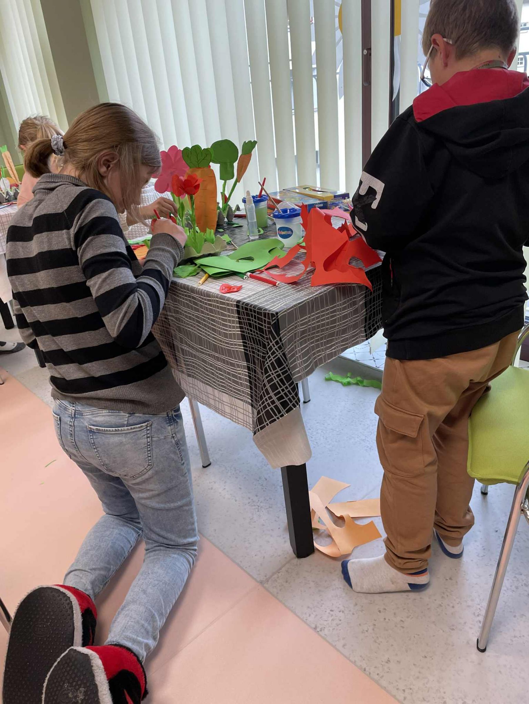 Uczestnicy najpierw przypomnieli sobie nazwy podstawowych warzyw, a następnie wykonali papierowy ogródek. Na zakończenie zajęć wszyscy uczestnicy wspólnie wykonali i skonsumowali sałatkę jarzynową.