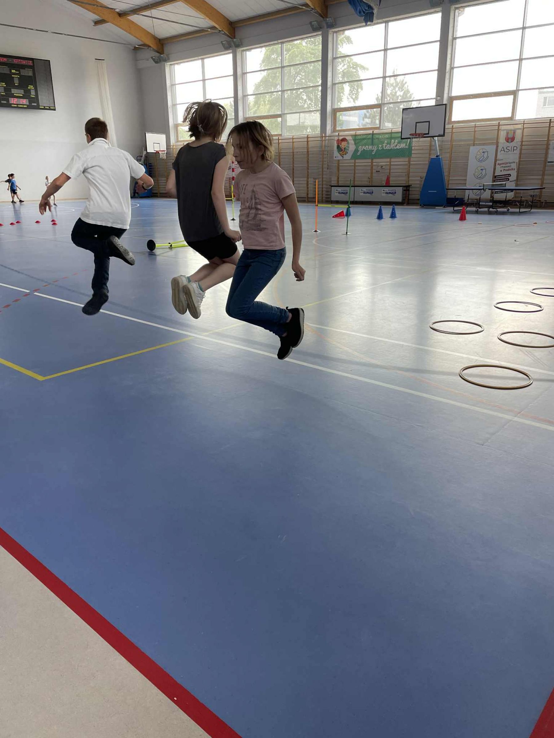 Dzieci z zaangażowaniem uczestniczyły w zajęciach sportowych, rozwijając swoją sprawność fizyczną, ucząc się współpracy i czerpiąc radość z aktywnego spędzania czasu.